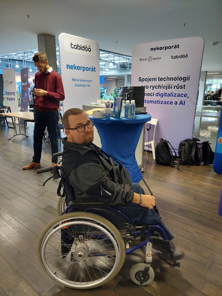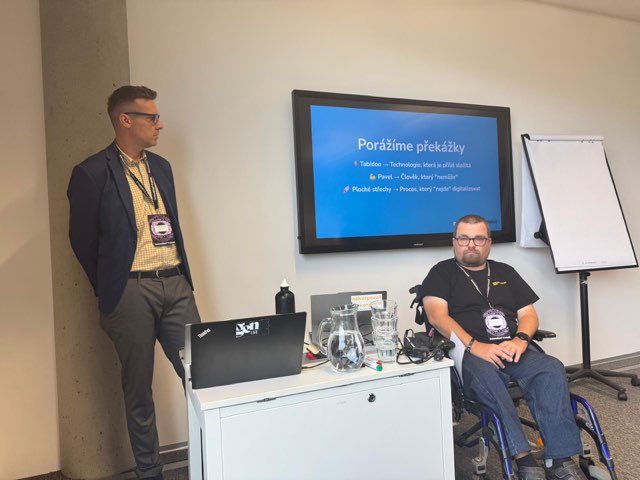 Náš kolega Pavel Hospodka prezentoval aplikaci Šikovná inventarizace, kterou se svým týmem vytvořil prostřednictvím platformy Tabidoo. Aplikaci vytvořili pro základní školu v České Bělé. Pavel byl ze začátku prezentace nervózní, ale po chvíli se do toho dostal a jeho nervozita rázem opadla. A co jeho na Týdnu Inovací zaujalo? Vyzkoušel si VR brýle, které ho celkem nadchly, a obdivoval AI robotického psa.
